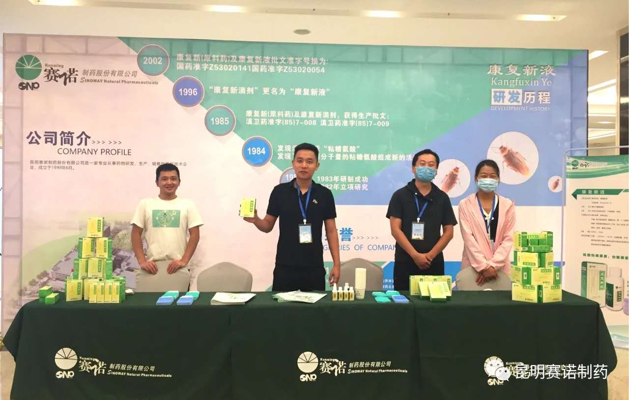 會議設(shè)置展區(qū)陳列,多家知名藥企匯聚于此,賽諾制藥作為昆明本土企業(yè),向參會的各方人員,展示了我公司原研產(chǎn)品康復(fù)新液。