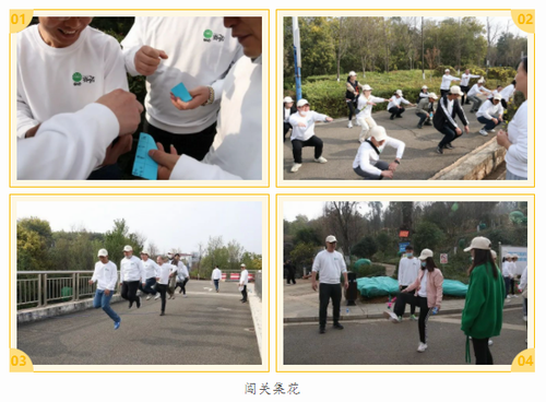 闖關(guān)集花——共設(shè)置4個(gè)關(guān)卡。關(guān)卡1:石頭剪刀布(闖關(guān)人員和守關(guān)者PK,一拳定輸贏,勝利者守關(guān)人戳一枚印花,敗者繼續(xù))。關(guān)卡2:連續(xù)下蹲15個(gè),得一枚印花。關(guān)卡3:協(xié)作跳繩(自行組隊(duì)10人,一同跳長繩,2人搖繩,其余8人連續(xù)跳過10個(gè)闖關(guān)成功,整組人各得一枚印花)。關(guān)卡4:踢毽子(單人連續(xù)踢5個(gè)以上;多人組合要求人數(shù)5人以上,每人至少踢1個(gè),闖關(guān)成功)。